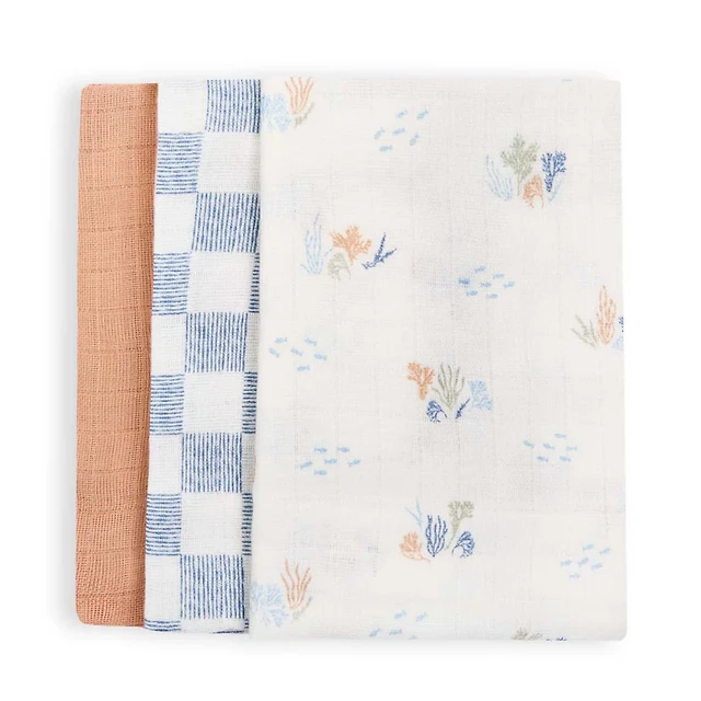 Organic Baby Muslin Blanket Set of 3 - Coastline