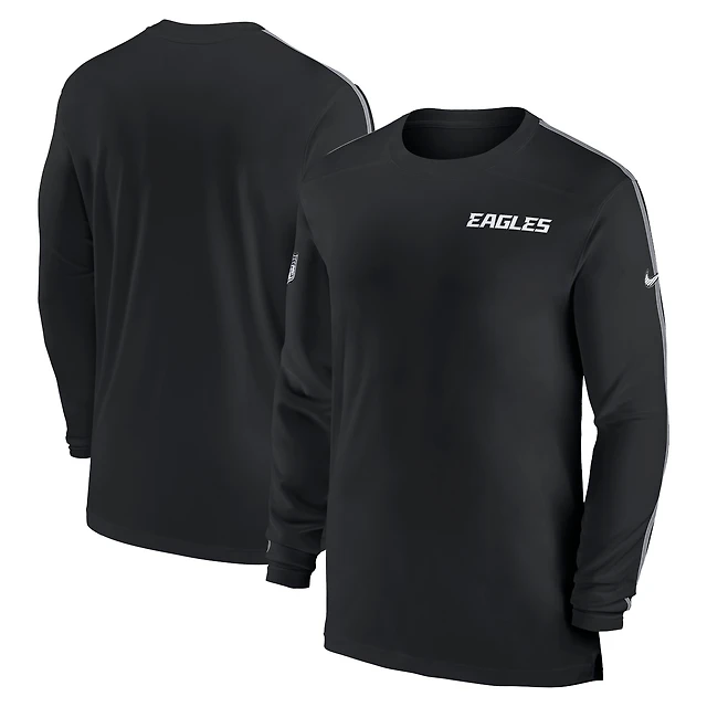 Men's Nike Black Philadelphia Eagles Sideline Coach UV Performance Long Sleeve T-Shirt