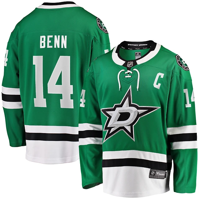 Men's Fanatics Jamie Benn Kelly Green Dallas Stars Captain Patch Home Breakaway Jersey