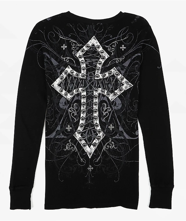 Affliction Lovita Black Thermal Long Sleeve T-Shirt