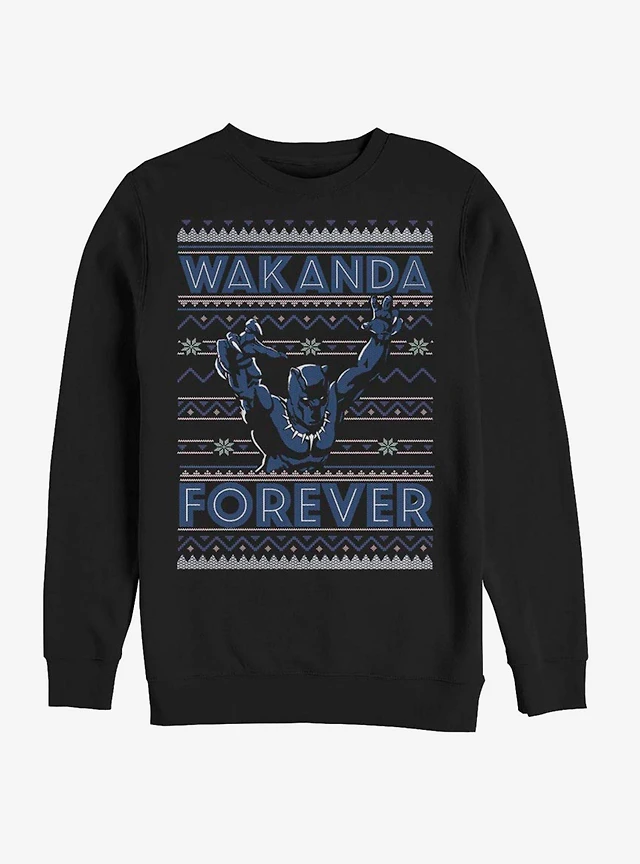 Marvel Black Panther Wakanda Forever Ugly Christmas Crew Sweater