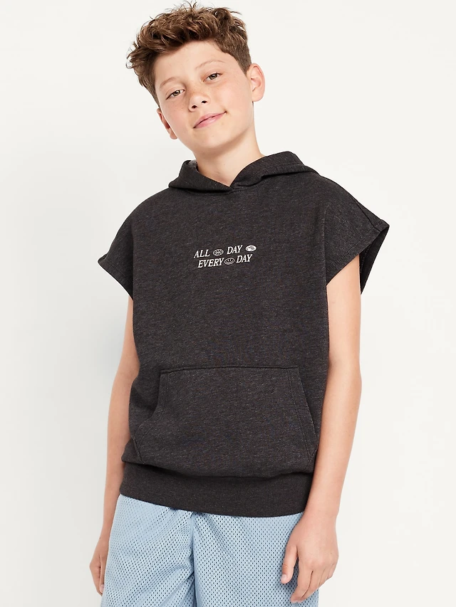 Oversized Fleece Graphic Muscle Hoodie for Boys