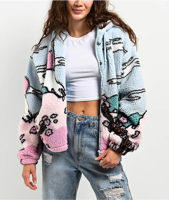 Empyre Raven Flames Black & White Sherpa Zip Hoodie