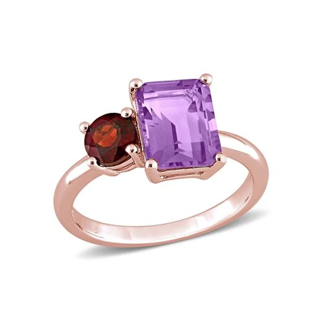 Alternating Amethyst Bracelet in Sterling Silver with Rose Rhodium - 7.25"