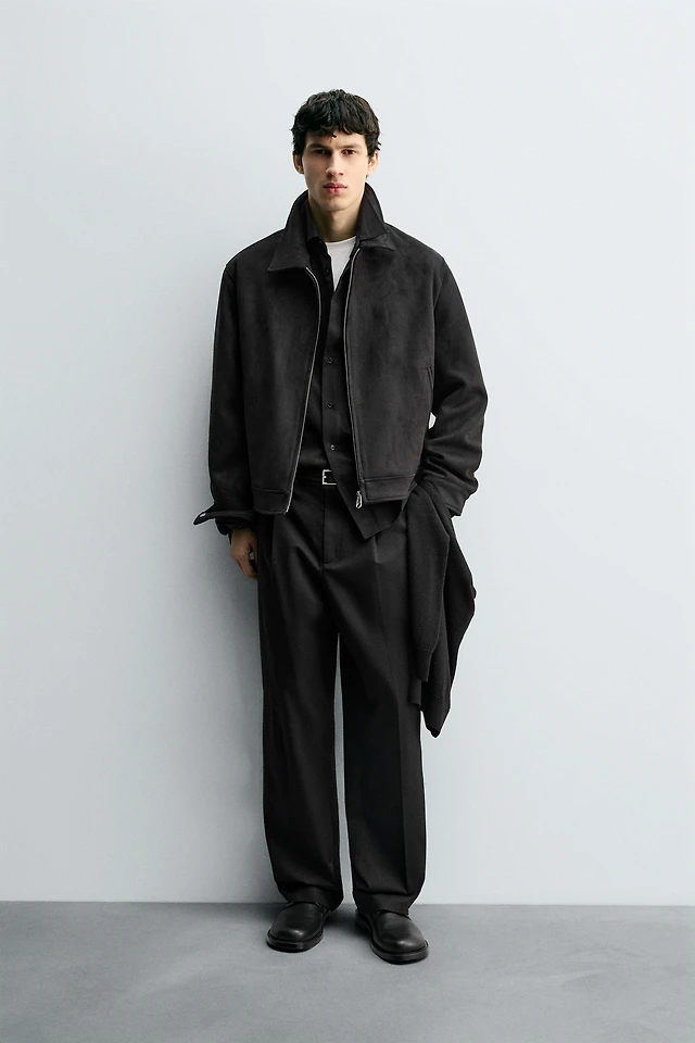 COMBINATION HOODIE FAUX LEATHER JACKET