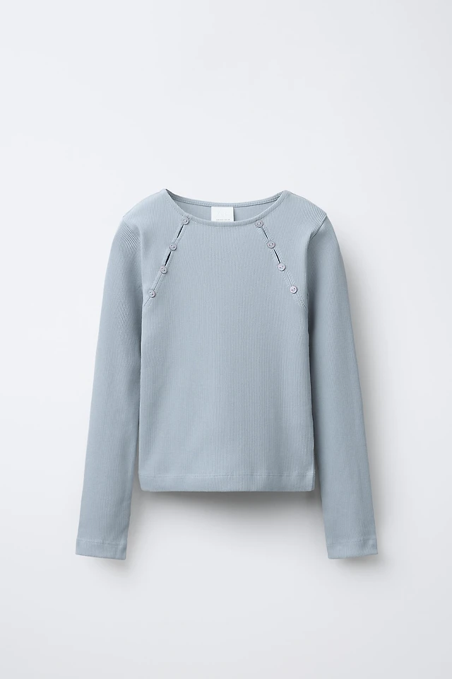 RIBBED T-SHIRT WITH BUTTONS AND CUT-OUT