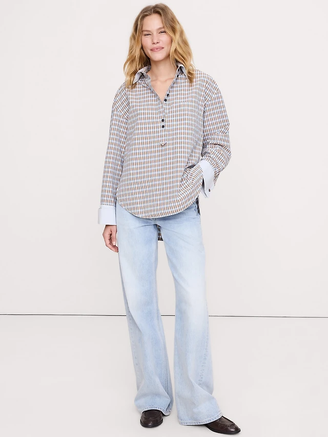 Silky Crepe Long-Sleeve Buttoned-Down Blouse