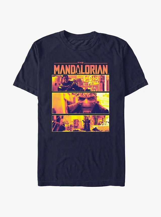 Star Wars The Mandalorian Grogu & Mando Scene Panels T-Shirt