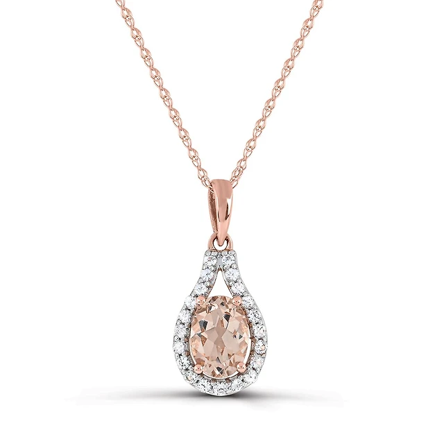 6.0mm Morganite and Diamond Accent Swirl Heart Pendant in Sterling Silver with 14K Rose Gold Plate