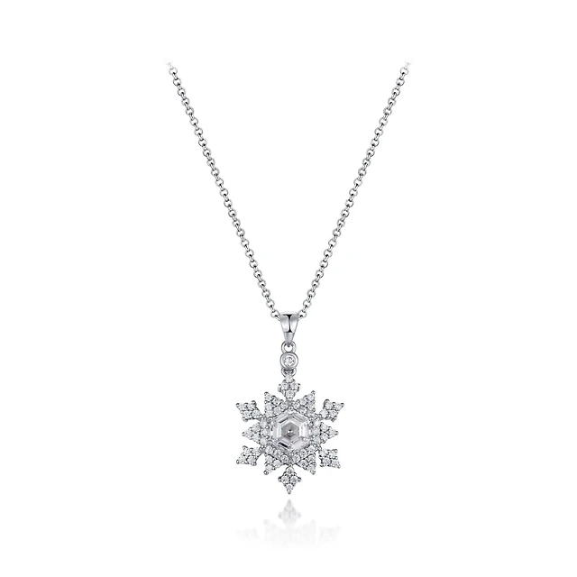 Sterling Silver Cubic Zirconia Snowflake Pendant With 19" Chain