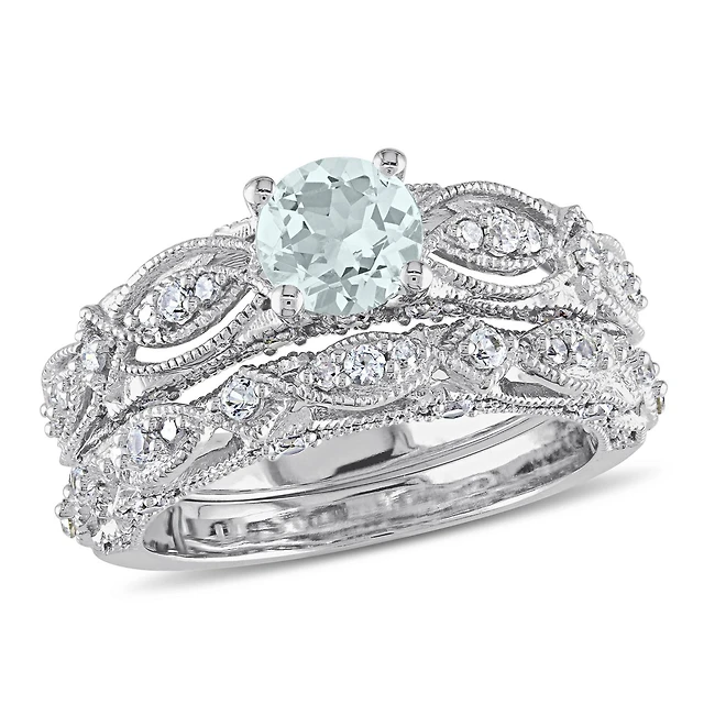 Sterling Silver Blue Sapphire & White Zircon Halo Ring
