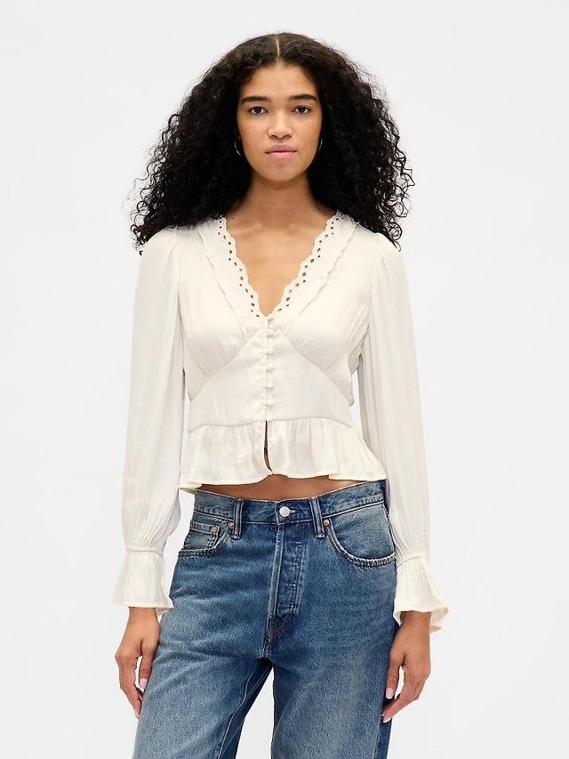 All It Takes Ribbed Nulu V-Neck Long-Sleeve Shirt *B-D Cups