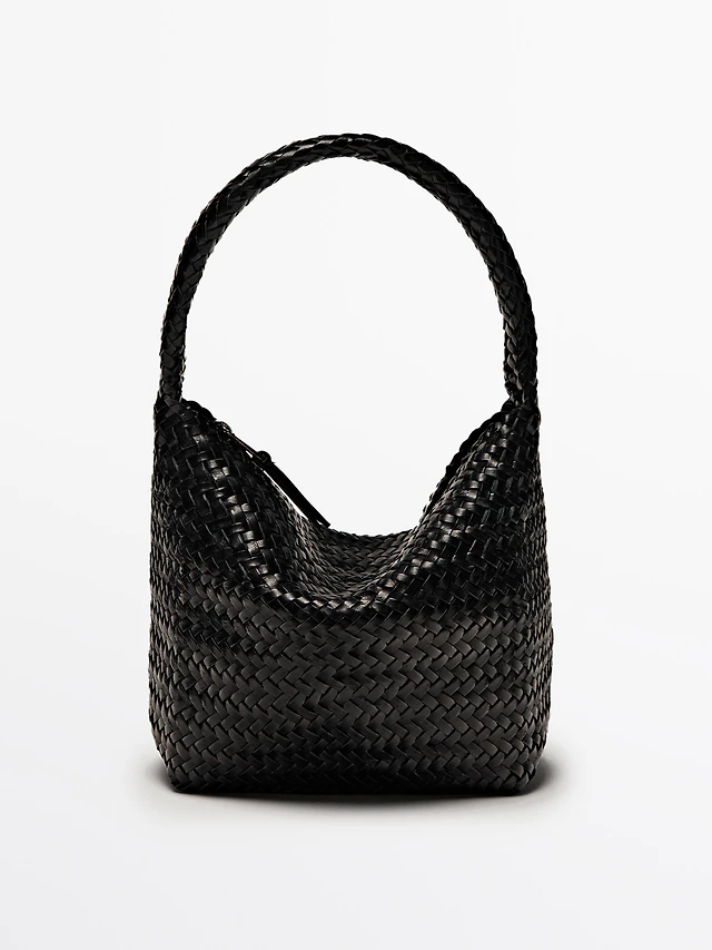 Small braided leather shoulder bag