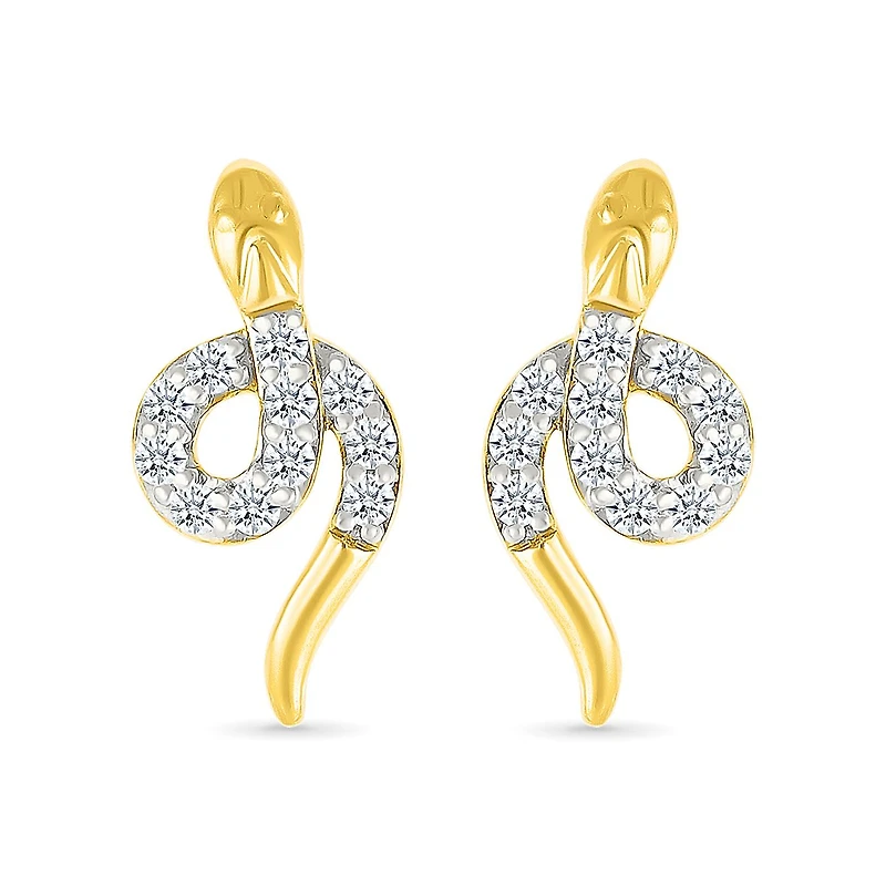 0.11CTW Diamond Snake Stud Earrings in 10K Yellow Gold