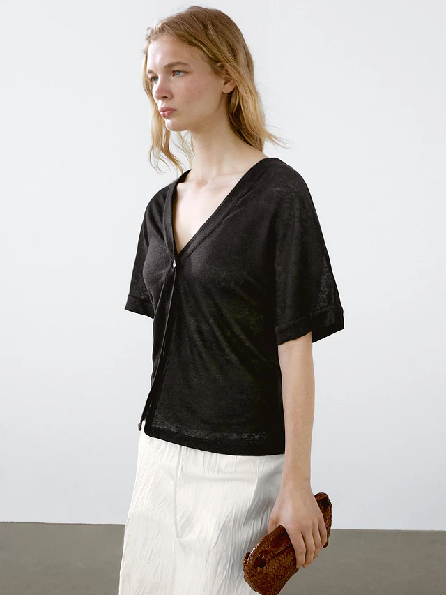 100% EXTRA-FINE WOOL SHORT SLEEVE CARDIGAN