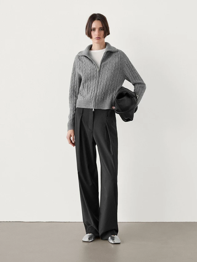 WOOL EMBROIDERED CABLE-KNIT CARDIGAN