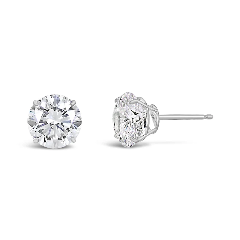 10K White Gold 8mm Round Cubic Zirconia Studs