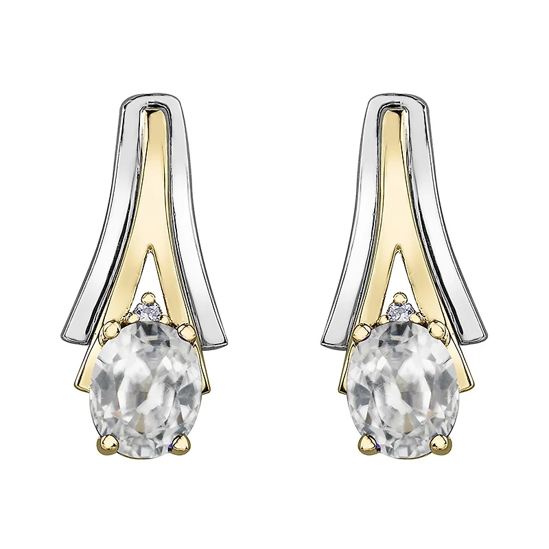 This modern yet classic 10k white and yellow gold earring is sure to become a favourite item in your jewellery collection. This item is perfectly adorned with genuine white topaz which is the birthstone for April. If you are looking for something stunning, order this for yourself or someone you love today!