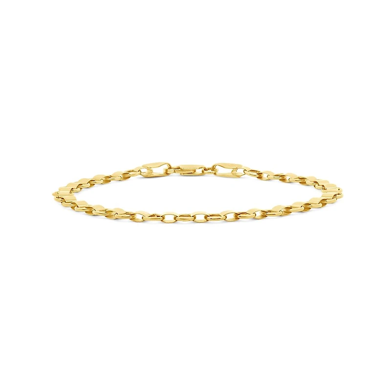 Add this stylish open rolex link bracelet to your accessories. This 7.25-inch bracelet is crafted in lustrous yellow gold and fastened with a lobster clasp. The simplicity and the sturdy construction of the open rolex link makes the bracelet timeless, and the high polished finish accentuates with a touch of elegance.