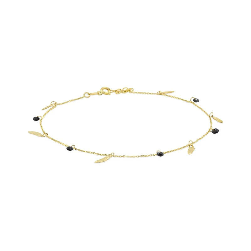 10K Yellow Gold Black CZ 10+1" Leaf Anklet
