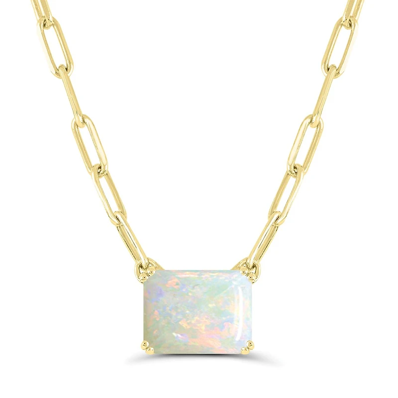 Graceful and elegant, this genuine opal necklace is a terrific look for the fashion-forward person. Designed in gleaming 10k yellow gold, this eye-catching paperclip link necklace is sure to turn heads. Buy this gorgeous piece for yourself or for that special someone in your life!