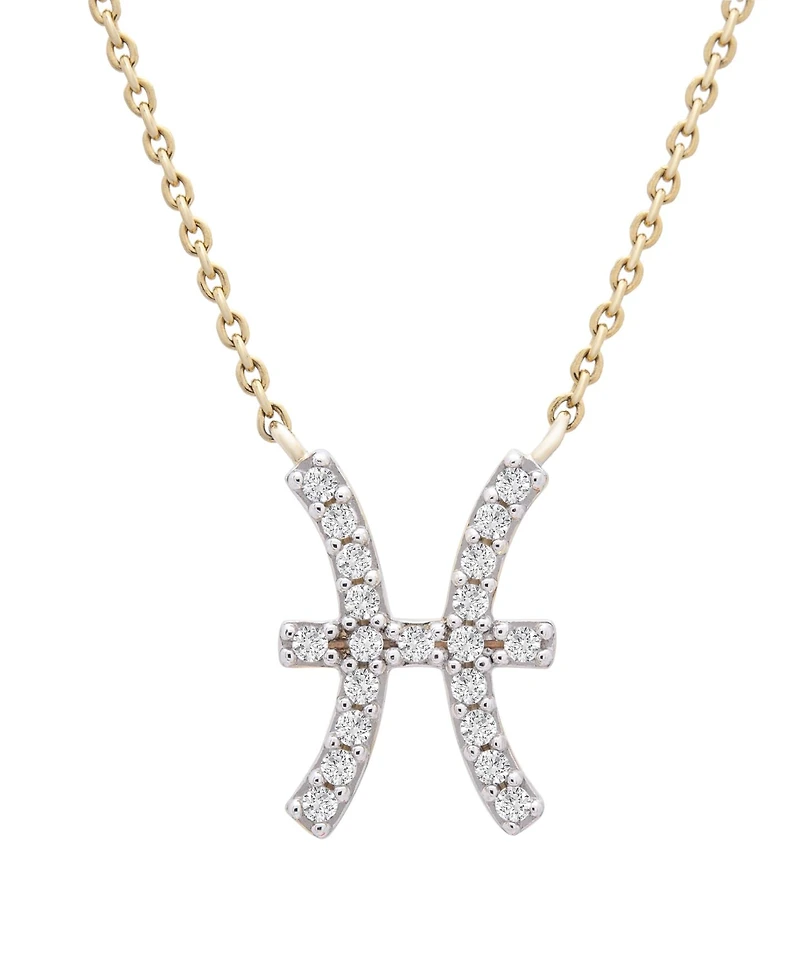 Created in sunny yellow gold and set with 0.10ctw of sparkling round diamonds, this Pisces pendant- from the Zodiac Collection- is suspended from a split cable link chain secured with a spring ring clasp. Pisces- Two Fishes: February 19 to March 20