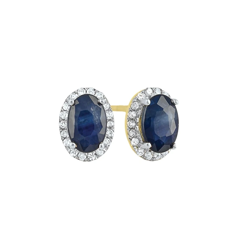 These elegant earrings feature stunning sapphires surrounded by a halo of sparkling diamonds, set in lustrous 10K yellow gold. The deep blue of the sapphires contrasts beautifully with the brilliance of the diamonds, creating a luxurious and eye-catching design. Perfect for adding a touch of sophistication and glamour to any occasion, these earrings offer a timeless and refined look.