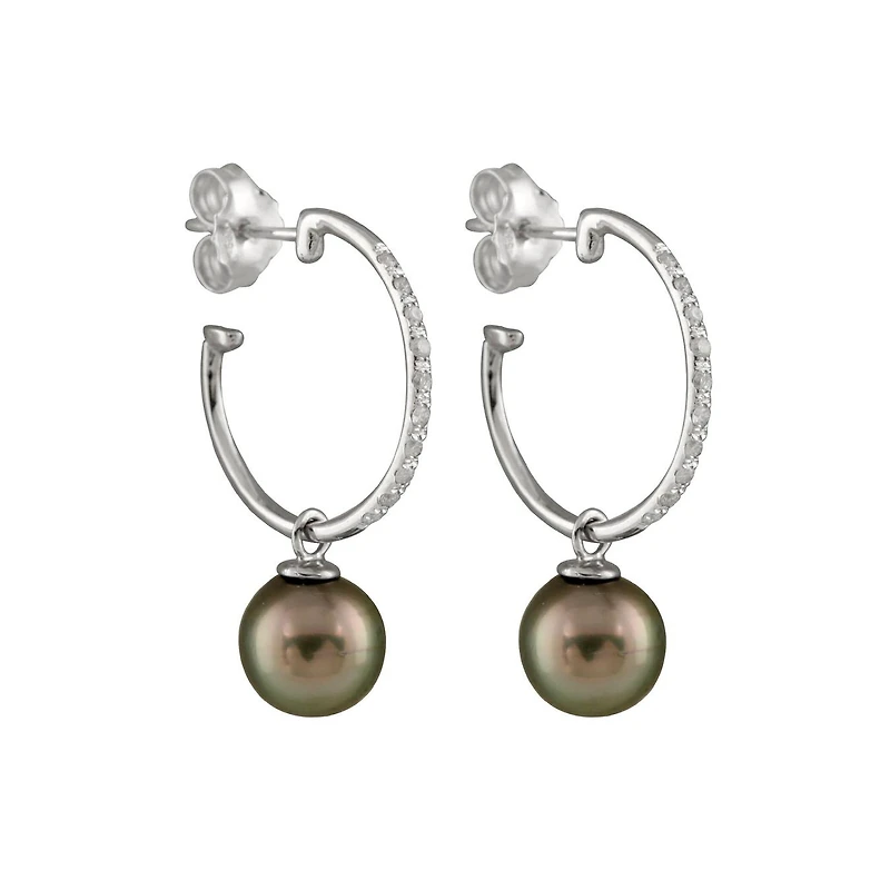 14K White Gold 8mm Tahitian Pearl & Diamond Drop Earrings