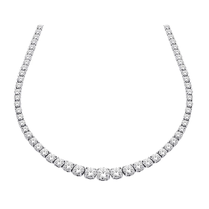14K White Gold Diamond 3.20CTW Riviera Necklace