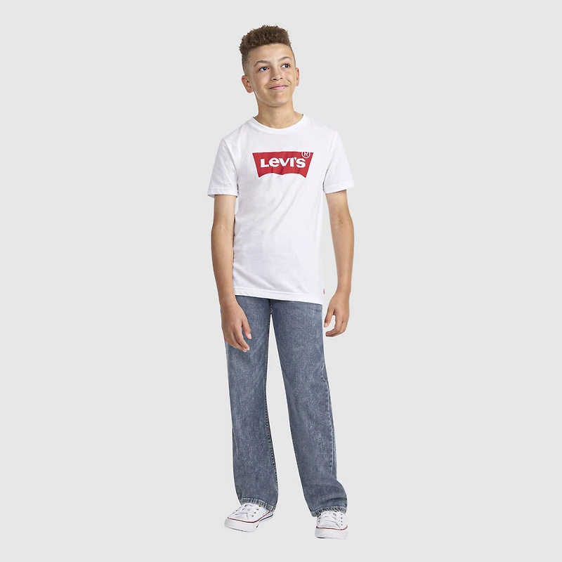 The comeback of laid-back style calls for a wardrobe staple like the Levi's® 555™ jeans! Your kid will love the roomy straight legs and cool denim shades, and you will love the quality Levi's® craftmanship. These pants are the essence of effortless cool.