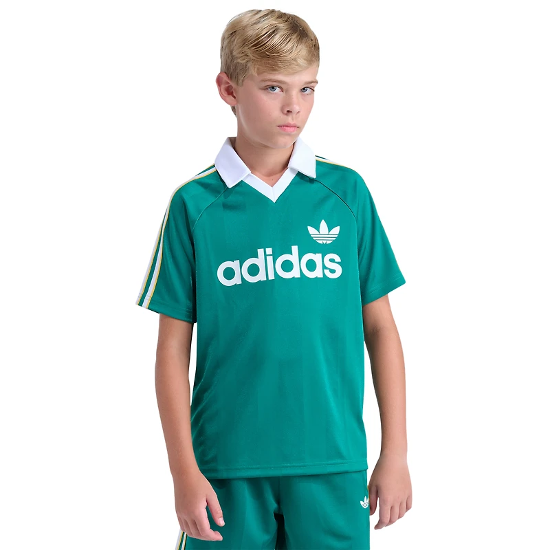 Let your boys bring game-day energy to every moment with the adidas Soccer Jersey. Inspired by the energy of game day, this youth jersey brings a bold, classic vibe to your kids' everyday adventures. The standout Trefoil logo graphic on the front brings timeless adidas attitude, while the soft jacquard fabric keeps your kids feeling good through every move. The iconic 3-Stripes on the sleeves gives your boys a clean, sport-inspired finish. From team practice to weekend hangouts, the adidas Soccer Jersey equips your young champions with confident style and game-ready comfort.