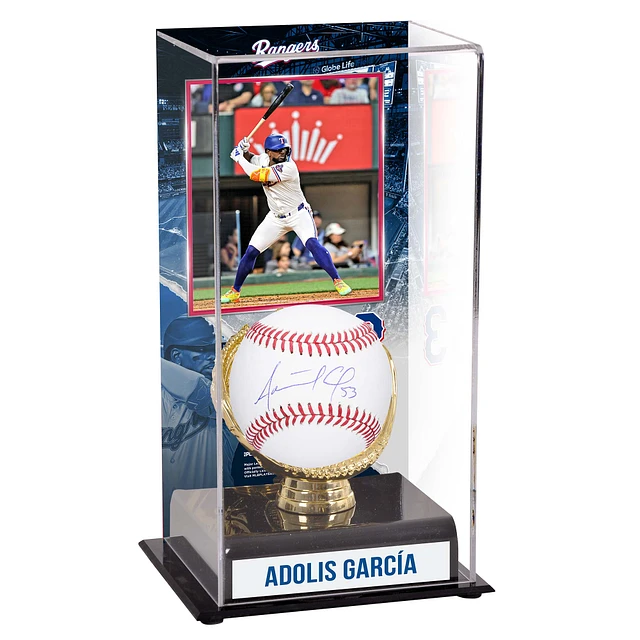 Adolis Garcia Texas Rangers Autographed Baseball and Sublimated Gold Glove Display Case with Image