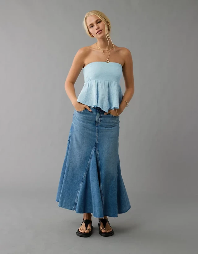 AE Handkerchief Hem Smocked Babydoll Tube Top