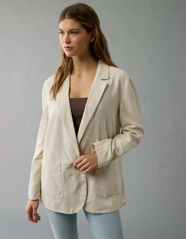 ZW COLLECTION LINEN BLEND DOUBLE BREASTED BLAZER