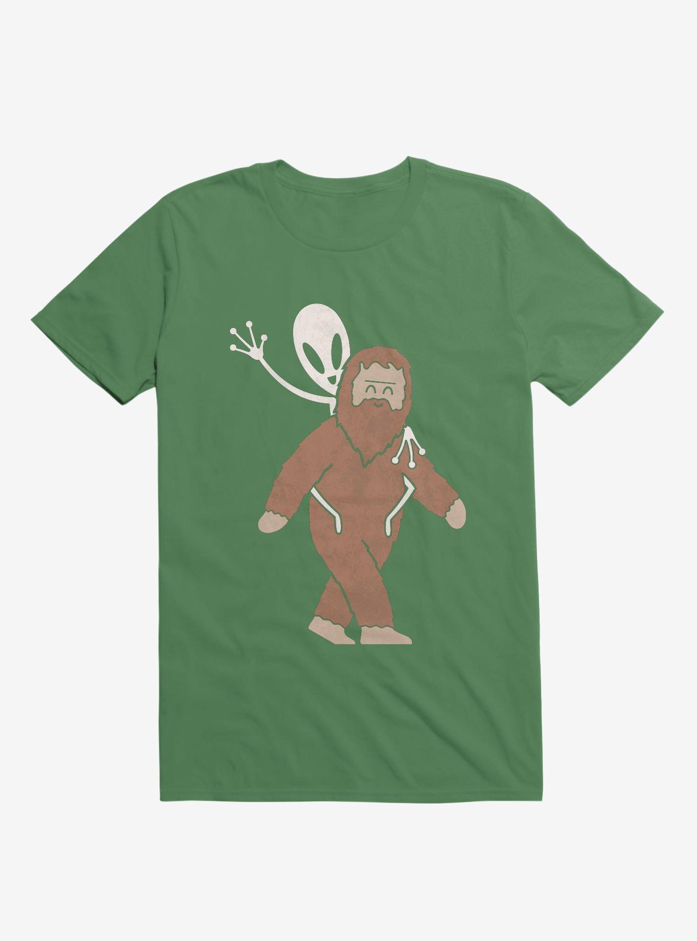 Alien And Sasquatch Piggyback Irish Green T-Shirt