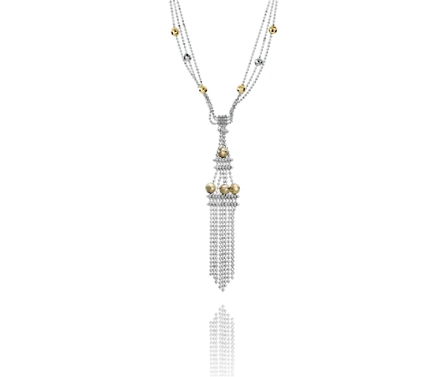 Lab-Created Blue and White Sapphire Interlocking Circles Double Tassel Necklace in Sterling Silver with 14K Gold Plate