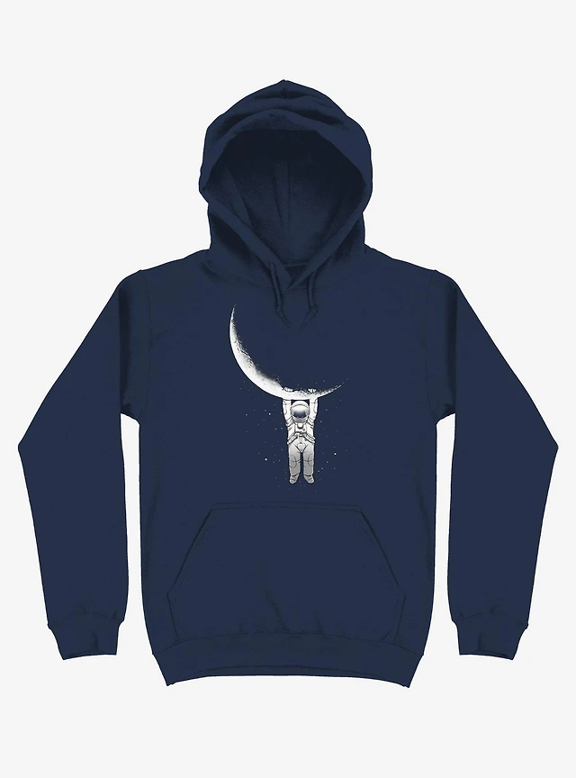Astronaut Holding On To Moon Navy Blue Hoodie