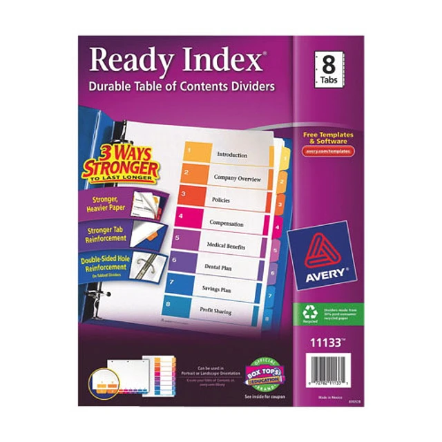 Avery Ready Index Table Of Contents Dividers (AVE11133) - 8 Pack - Assorted