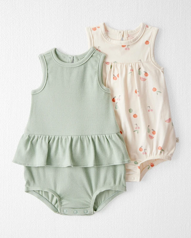 Baby 2-Pack Organic Cotton Rompers Veggie Fruit Print