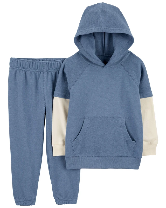 Baby 2-Piece Layered-Look Hooded Tee & Pull-On Pant Set