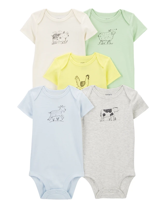 Baby 5-Pack Animals Short-Sleeve Cotton Bodysuits