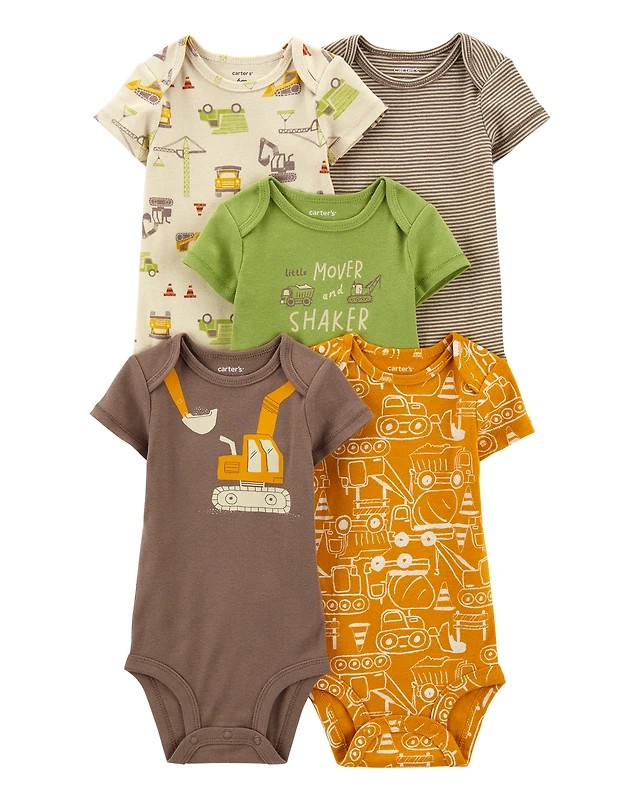 Baby Boy 5-Pack Construction Short-Sleeve Cotton Bodysuits