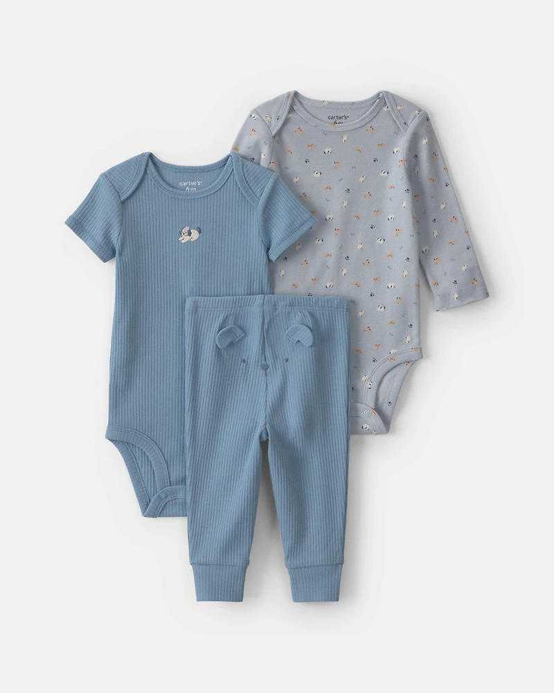 Baby Boy 3-Piece Dog Bodysuit & Pant Set - Blue/Grey