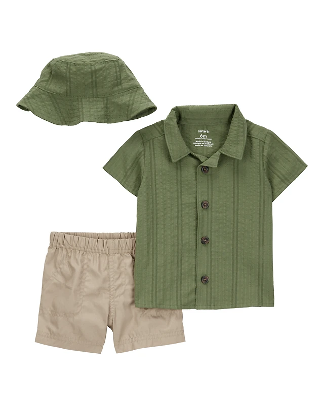 Baby Boy 3-Piece Short & Hat Set - Olive/Khaki