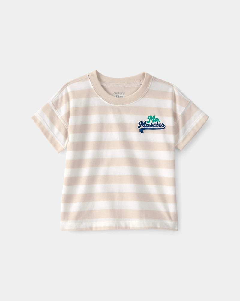 Get ready for playtime with the perfect tee. The Baby Boy 'Mr. Muscles' Striped Top in tan is a standout choice for casual days. Made from soft fabric, it ensures all-day comfort for your little one. The playful striped pattern adds a fun touch, while the easy pull-on style makes dressing a breeze for busy parents. Whether it's a day at the park or a family gathering, this top is versatile enough for any occasion. Trust in the quality that parents love, and let your baby flex their style with confidence.