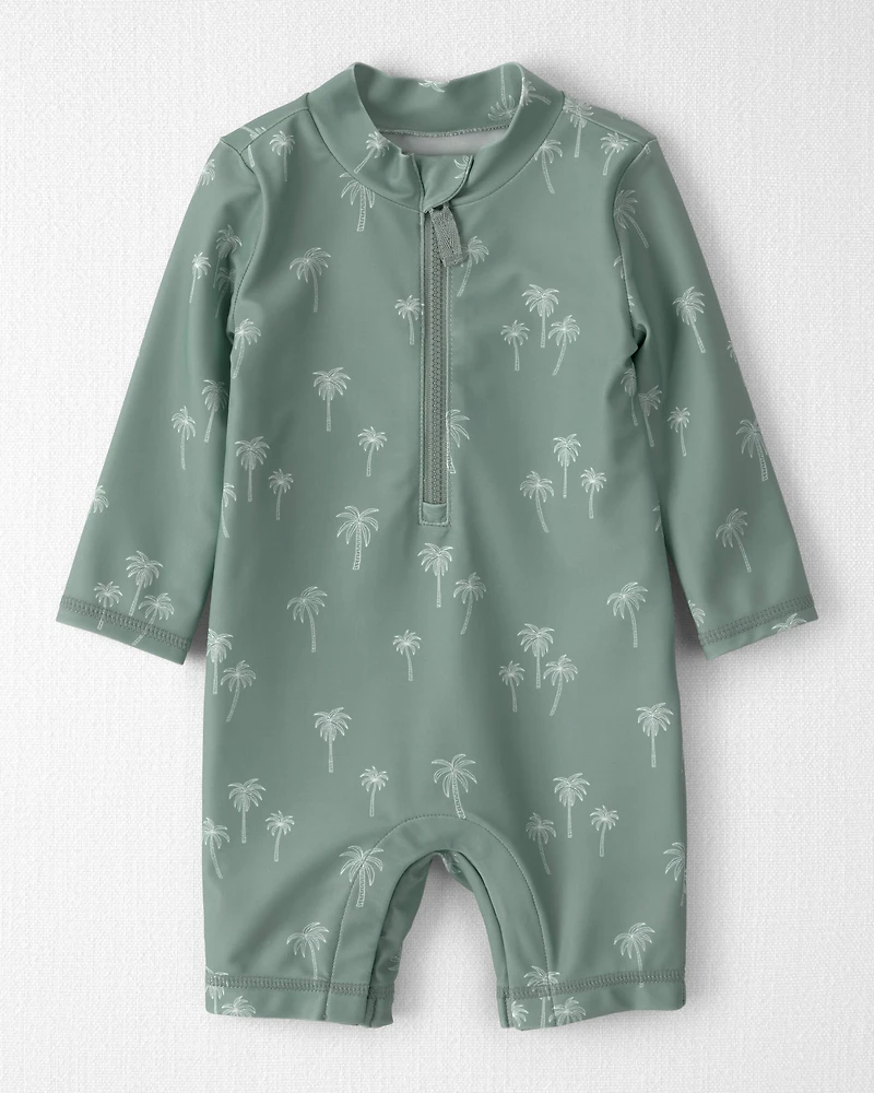 Inspired by days spent near the water, this recycled romper keeps your little one comfortable and covered. The palm tree print adds a natural touch, while UPF 50+ protection and easy hidden snaps at the legs make it a practical choice for swimwear. With a half-zip and a tab for gentle dressing, it’s a thoughtful piece for families who value sustainability and simplicity. Crafted in the purest organic fabrics and sustainable materials, Little Planet is a return to simplicity. Thoughtful essentials and timeless pieces to gift or to hold on to.