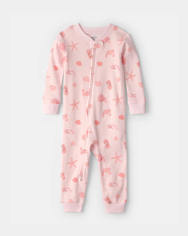 Baby Girl Seashell 100% Cotton Snug Fit 1-Piece pyjama - Pink