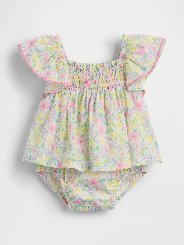 Baby Smocked Flutter-Sleeve Bodysuit Dress