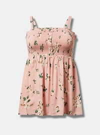 FIT Flowy babydoll silhouette. Adjustable straps. Measures 32"" from shoulder (size 2). MATERIALS + CARE Challis woven fabric: New, improved, and loved by all—and still lightweight, drapey, and (really!) machine-washable. Stretch level: None. Machine wash cold. Tumble dry low. Imported. DETAILS Square neckline. Button placket. Dotted print.
