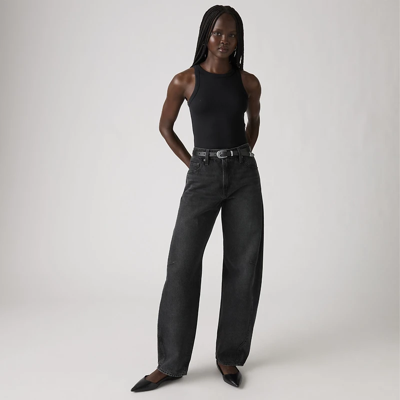The curved leg is here to stay. With a mid rise and a loose fit, our Baggy Dad Barrel jeans are relaxed yet flattering with extra room for a subtle edge.
